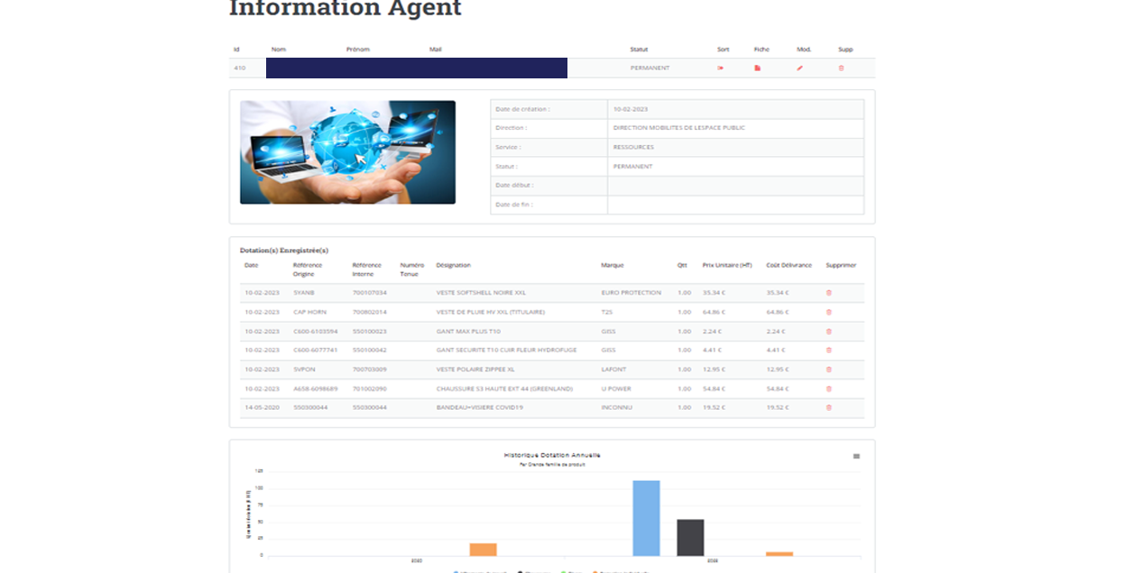 - Gestion des historiques de dotation des vêtements et EPI